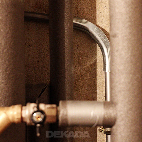 Все трубопроводы механически прикреплены к стене при помощи специальных муфт и саморезов.